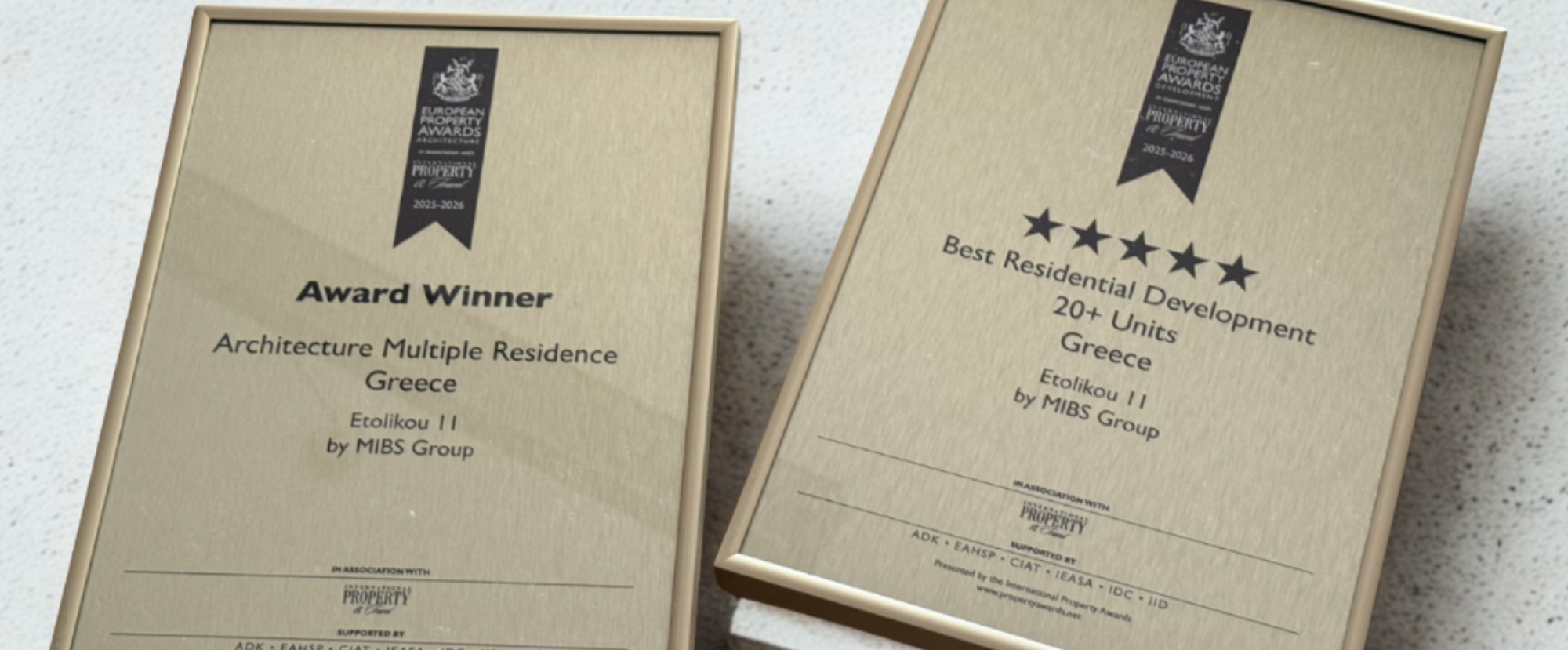 Η MIBS Group ανακοινώνει με υπερηφάνεια τη νέα διεθνή της διάκριση — διπλή βράβευση στα European Property Awards 2025, έναν από τους πιο καταξιωμένους θεσμούς που τιμούν την αριστεία στον παγκόσμιο κλάδο των ακινήτων.